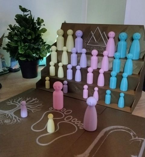 Plataforma Transgeneracional para apoyar los vincores a la hora de Constelar, 4 escalones para distintas generaciones. Campo con linea de tiempo. Pasado, presente y Futuro.